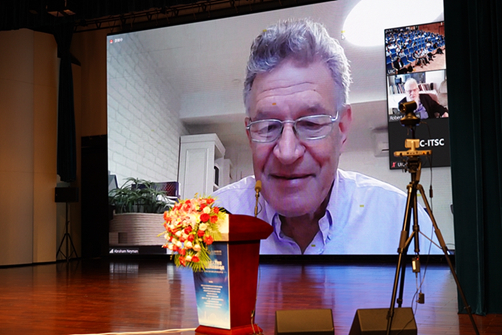 Robert John Aumann院士以“人工智能与自然智能”为题发表演讲。谈及自然智能(NI)与人工智能(AI)的区别,他认为自然智能对情感的重要运用是人工智能无法做到的。在AI系统中,系统的目的和它所要实现的目标是从外部施加在系统上的。而在NI系统中,系统的目的是系统的一部分。他认为这种区别可以用来解释人类意识进化的起源。Aumann院士表示,自己很荣幸成为UIC的荣誉教授,并以中文表示感谢。